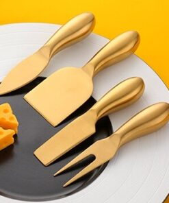 Un set de 4 ustensiles à fromage en métal inoxydable de couleur dorée de 15 cm de hauteur