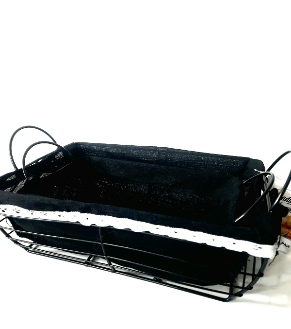 Un set de deux paniers à pain en tissus de couleur noire avec une base métallique de forme rectangulaire de 30 x 20 cm et 25 x 15 cm