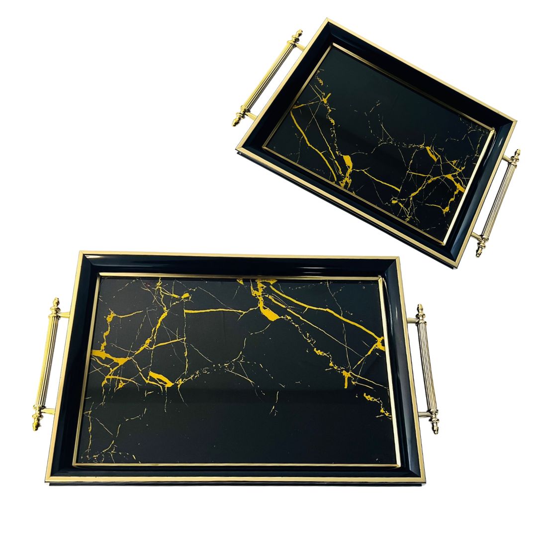 - Finition dorée : Les bords des plateaux sont délicatement finis en doré, apportant une note de luxe et d’élégance qui rehausse leur esthétique générale.