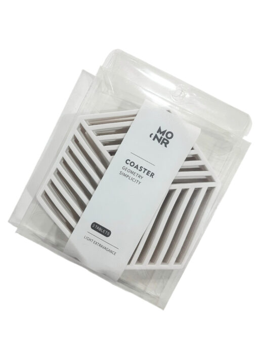 Un pack de 3 sous théière en silicone de couleur blanche de forme hexagonale de 15 cm x 14 cm