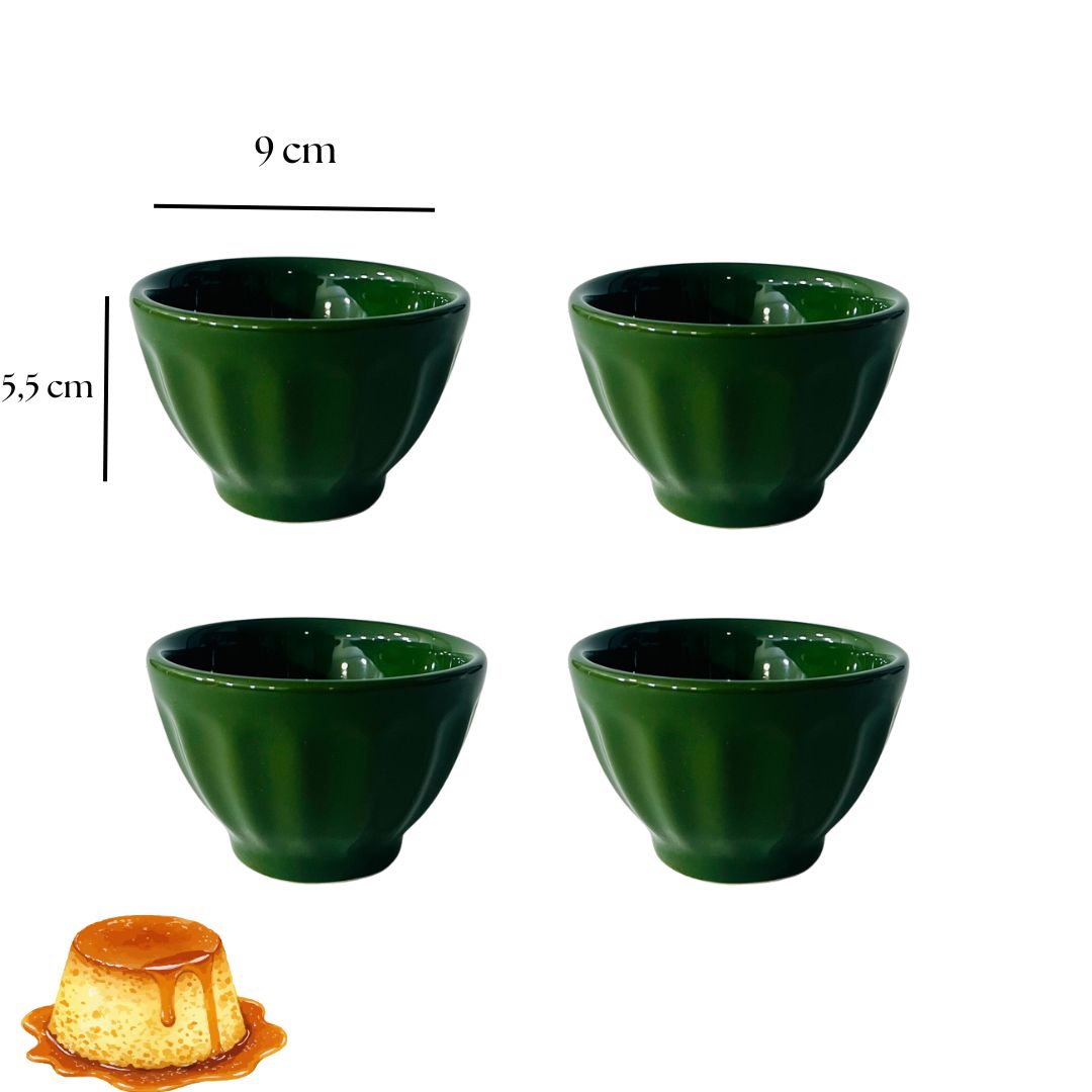Un set de 4 bols pour flan en porcelaine de couleur verte, conçus pour sublimer vos desserts