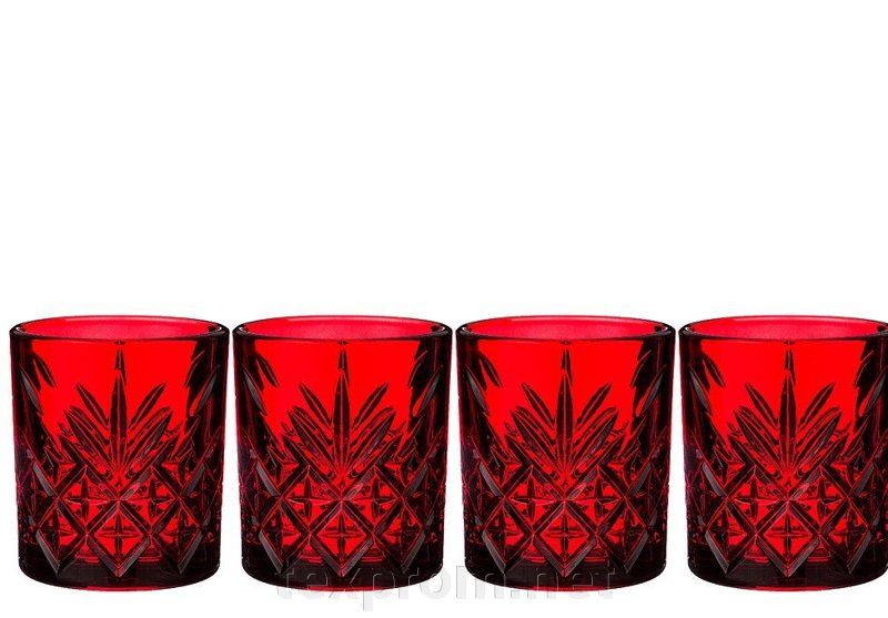 Un pack de 4 verrines de couleur rouge de la marque Pasabahce de 6 cm x 4,5 cm