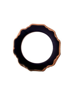 Un pack de six assiettes à gâteaux de 16 cm en porcelaine fine de couleur noire avec un motif en doré