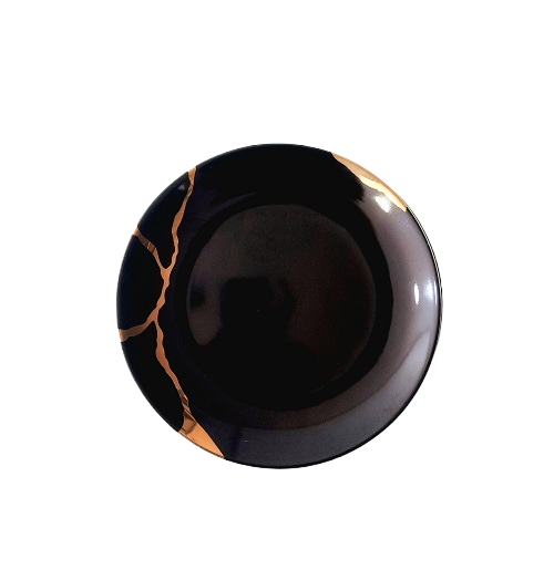 Un pack de six assiettes à gâteaux de 16 cm en porcelaine fine de couleur noire avec un motif en doré