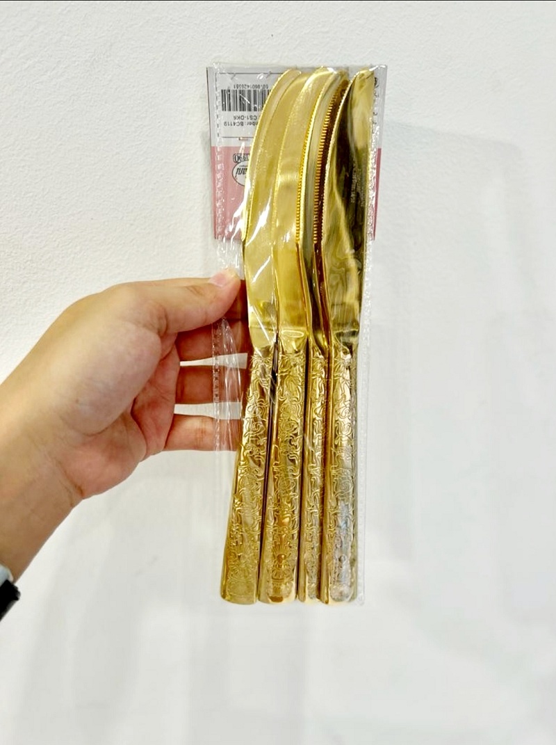Un pack de 6 couteaux à table en métal inoxydable de couleur dorée de 20 cm de hauteur