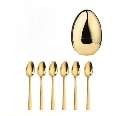 Une coque sous forme d’œuf composé de 6 cuillères à café en métal inoxydable de couleur dorée