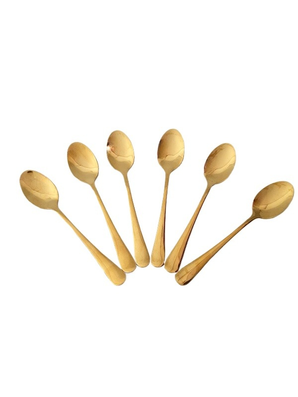 Un pack de 6 cuillères à café en métal inoxydable de couleur dorée de 12 cm de hauteur