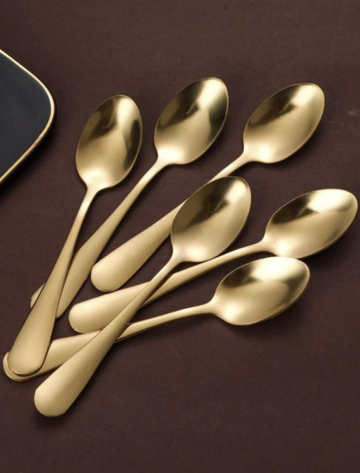 Un pack de 6 cuillères à gâteaux en acier inoxydable de couleur dorée de 13 cm de hauteur