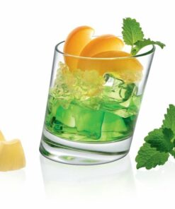 Un pack de 6 verres à jus de forme basse d’une capacité de 350 ml de 10 cm de hauteur et de 8,5 cm de diamètre de la marque italienne Borgonovo