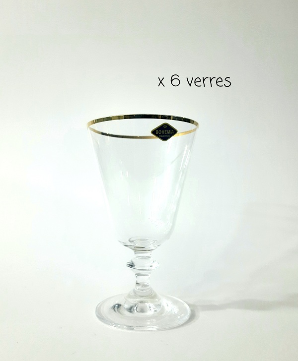 Un pack de 6 verres à pied de couleur transparente avec filet en doré de 14,5 cm de hauteur de la marque Bohemia