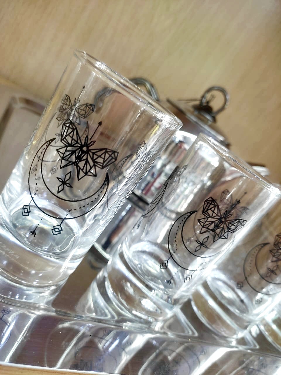 Un pack de 6 verres à thé passable au lave vaisselle de la marque Luminarc avec un motif en noir
