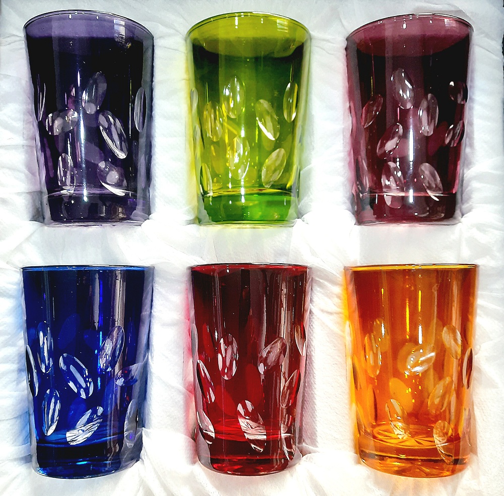 Un pack de 6 verres à thé en verre soufflé multicolores