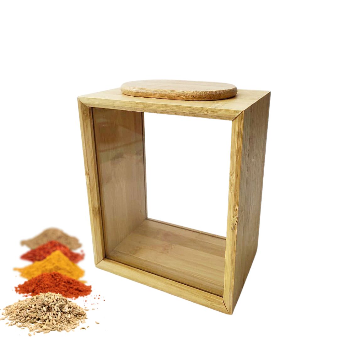 Découvrez notre bocal à épices en bois et verre, mesurant 17,5 cm de hauteur, 14,5 cm de longueur et 10 cm de largeur offrant ainsi un espace suffisant pour stocker vos épices préférées tout en ajoutant une touche naturelle à votre cuisine. Le bocal dispose d’un couvercle en bois facile à manipuler, qui vous permet de voir le contenu à l’intérieur tout en préservant la fraîcheur de vos épices.