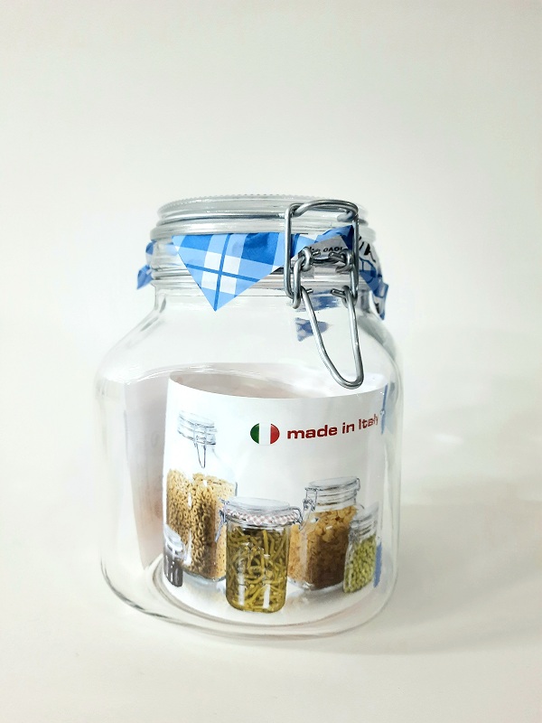 Un bocal en verre à fermeture hermétique d’une capacité de 2000 cc de la marque italienne Borgonova