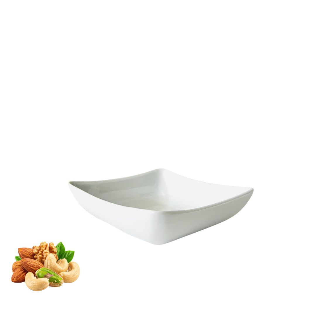 Découvrez notre bol carré en porcelaine blanche, mesurant 13 cm x 13 cm avec une profondeur de 3 cm, idéal pour servir vos plats préférés, et entièrement compatible avec le lave-vaisselle pour un nettoyage facile.