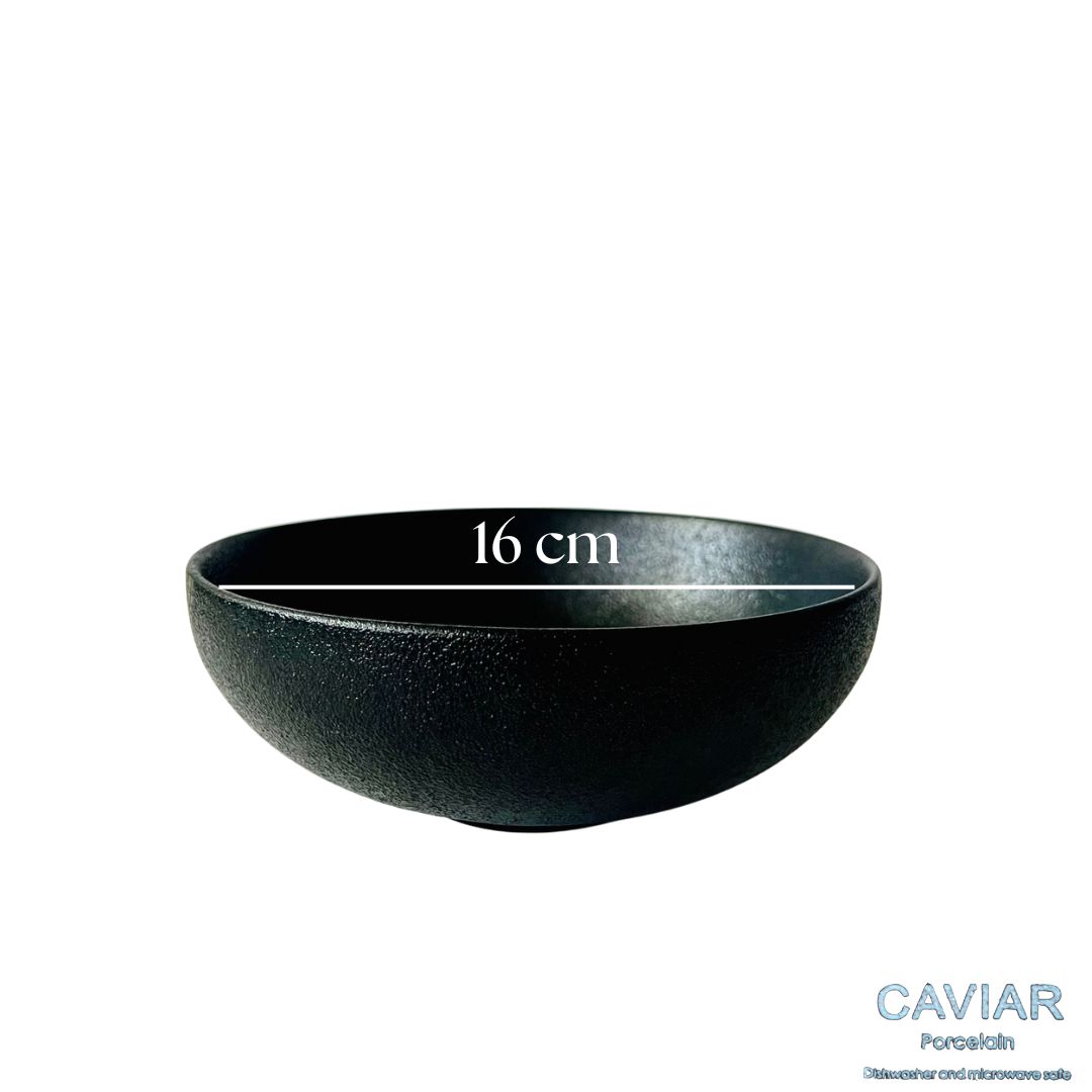 Un bol de 16 cm de diamètre et 6 cm de hauteur de la collection Caviar par Maxwell & Williams fabriqué en pierre de couleur noir mat.