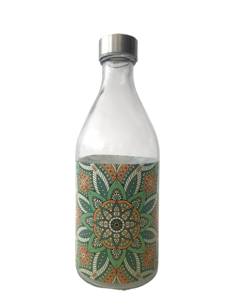 Une bouteille à jus en verre de 26 cm de hauteur et de 1 lire de capacité avec fermeture renforcée