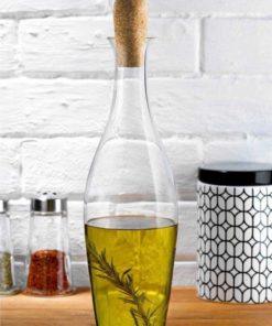 Une carafe en verre d’une capacité de 1100 cc et d’une hauteur de 32 cm avec bouchon en bambou