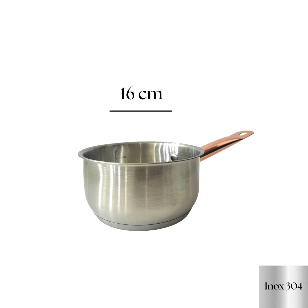 Découvrez notre casserole en inox 304 de 16 cm de diamètre, garantissant une résistance à la corrosion et une longévité accrue, offrant une capacité de 1,5 litres, idéale pour préparer des plats savoureux et elle est compatible avec tous les types de feux sauf l’induction, facile à nettoyer au lave-vaisselle, et dotée d’une main non chauffante pour une utilisation en toute sécurité.
