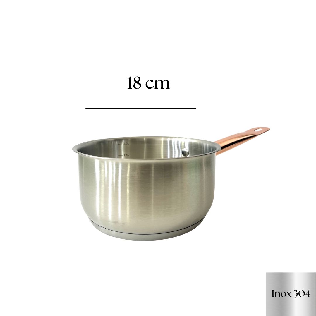 Découvrez cette magnifique casserole en inox 304 de 18 cm de diamètre, offrant une capacité généreuse de 2 litres, elle est parfaite pour préparer une variété de plats, sa main élégante de couleur rose gold est spécialement conçue pour ne pas chauffer, assurant ainsi une prise en main confortable et sécurisée pendant la cuisson, et elle est entièrement compatible avec le lave-vaisselle, permettant un nettoyage rapide et pratique, tout en étant adaptée à tous les types de feu, à l’exception de l’induction, ce qui en fait un ustensile polyvalent pour toutes vos créations culinaires.