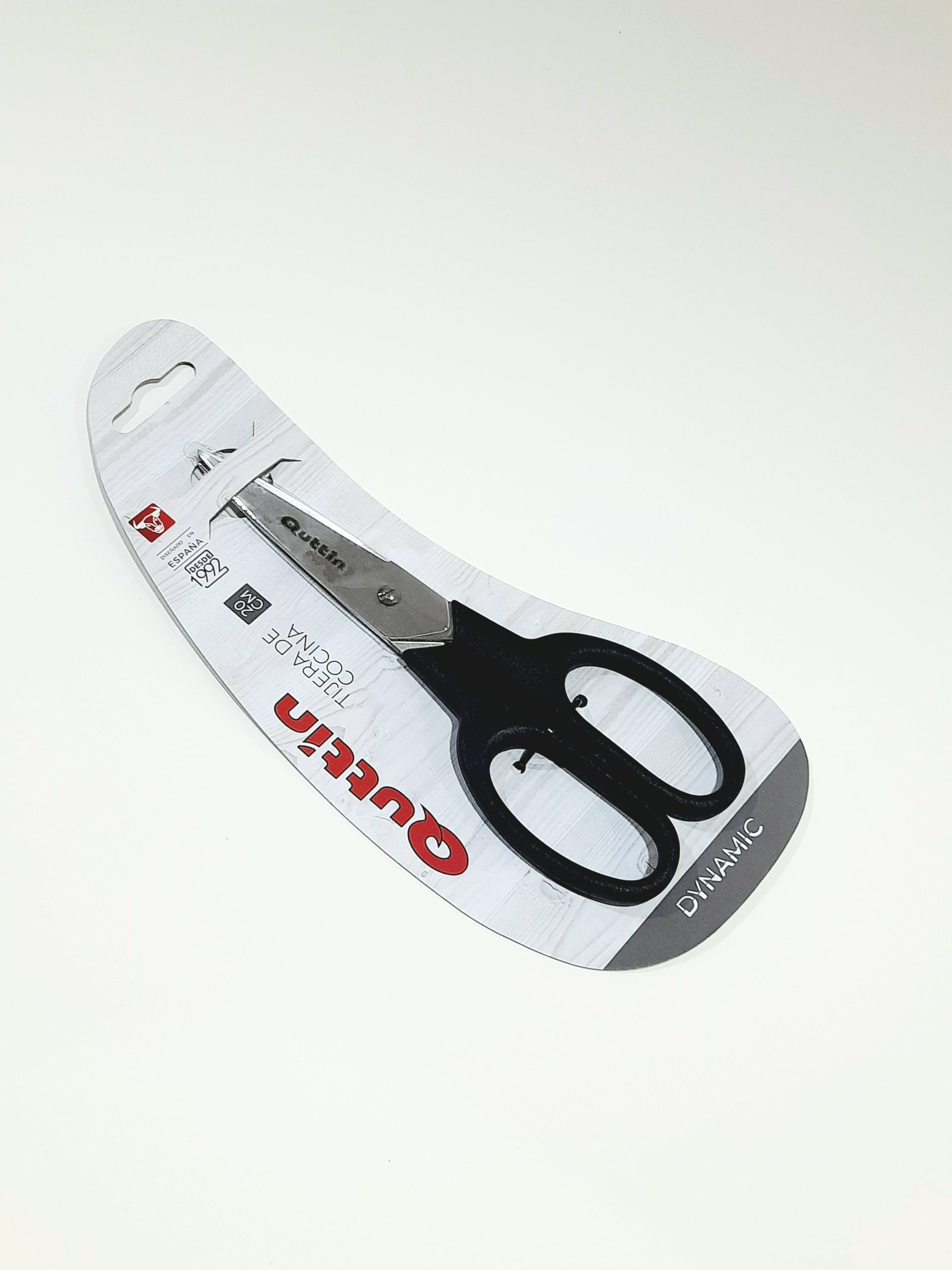 Un ciseau à cuisine de couleur noire en métal inoxydable de la marque Quttin