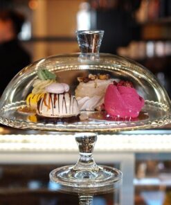 Une cloche à gâteaux en verre de 32 cm de diamètre avec couvercle