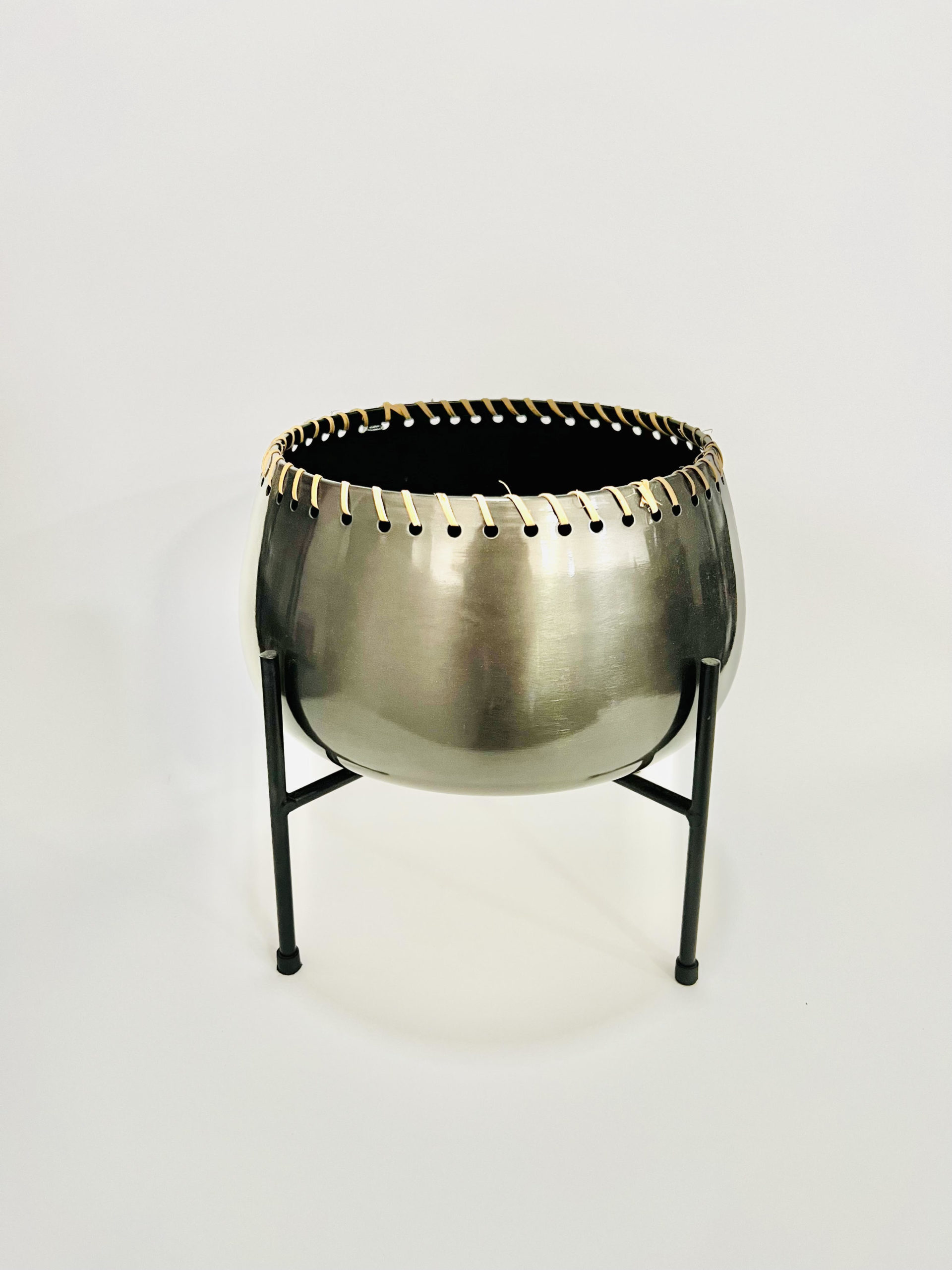 Une coupe à pied métallique de 18 cm de diamètre de couleur noire avec support