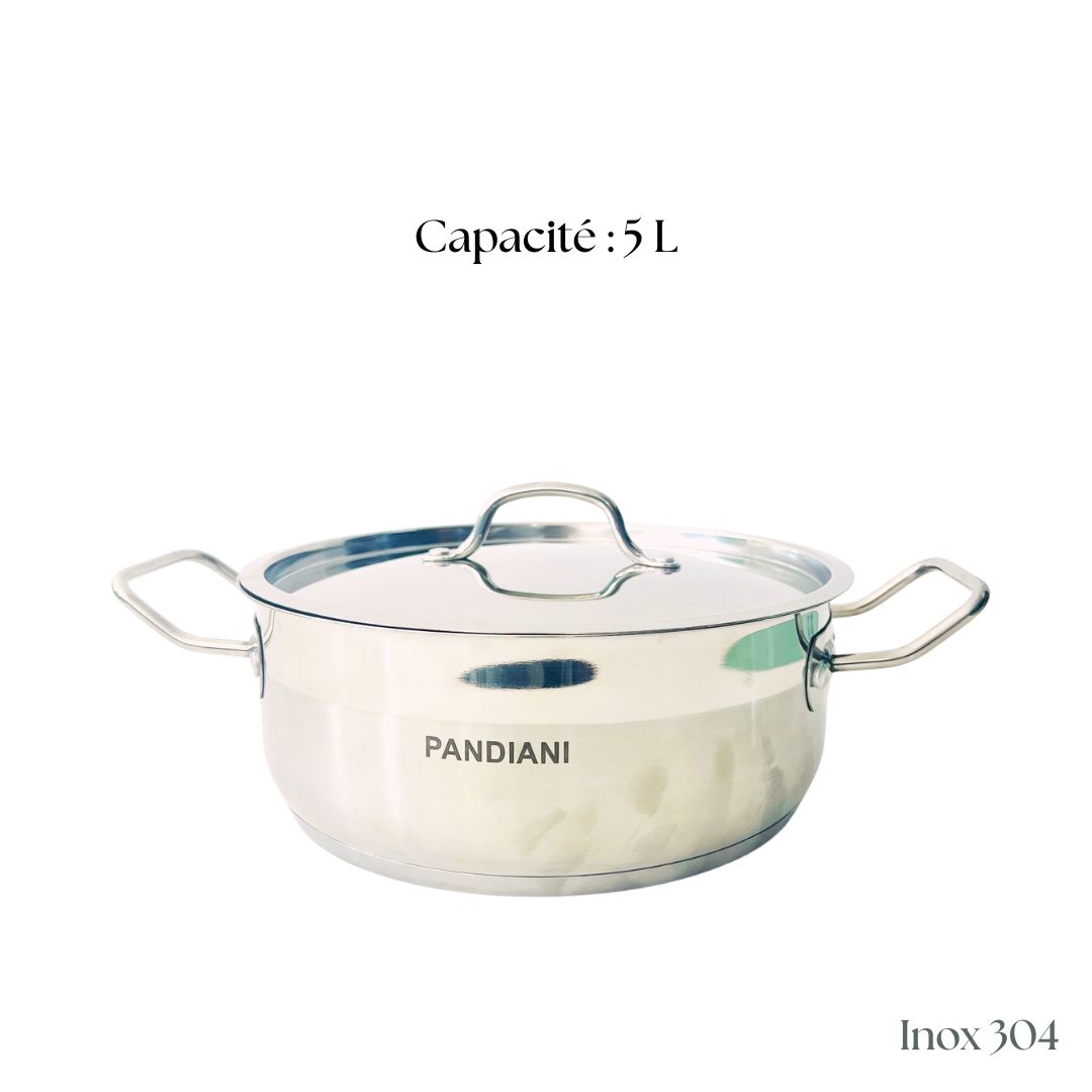 Équipez votre cuisine avec notre marmite en inox 304, parfaite pour les cuisiniers amateurs et professionnels. Avec sa capacité généreuse de 5 litres, cette marmite vous permet de préparer de grandes quantités de soupes, de ragoûts ou de plats mijotés pour toute la famille. Mesurant 28 cm de diamètre et 10 cm de hauteur, elle est suffisamment spacieuse pour accueillir tous vos ingrédients tout en offrant une cuisson uniforme grâce à son matériau en acier inoxydable de haute qualité. Compatible avec tous les types de feux sauf l’induction. Son couvercle hermétique permet de conserver la chaleur et l’humidité, garantissant des plats savoureux. De plus, elle est entièrement lavable au lave-vaisselle, facilitant ainsi son entretien et vous permettant de profiter de votre temps en cuisine sans tracas. Son design moderne et élégant s’intègre harmonieusement dans toutes
