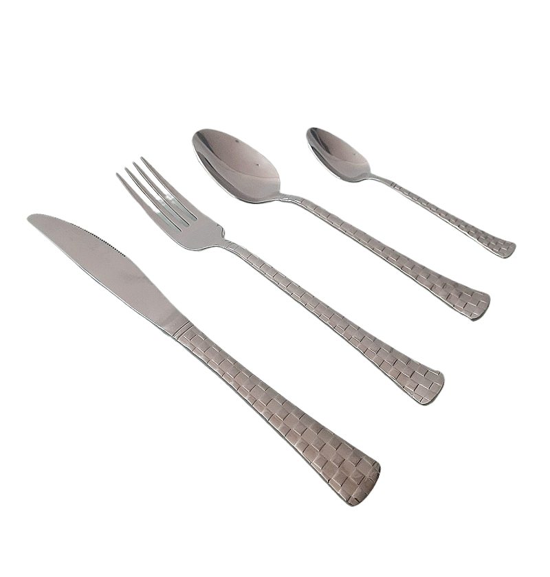 Un ensemble de couvert en métal inoxydable 18/10 composé de 6 Fourchettes à table 6 cuillères à soupe 6 couteaux à table et 6 cuillères à dessert