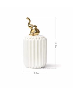 Une petite bonbonnière en porcelaine de couleur blanche avec couvercle sous forme d’éléphant en doré