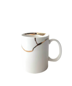 Un mug en porcelaine fine de 9,5 cm de hauteur de couleur blanche avec le motif Kintsugi en doré
