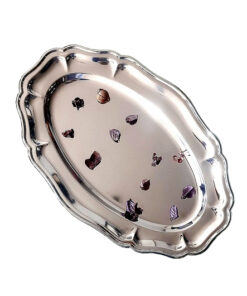 Un panier à pain en tissus de couleur noire avec un support métallique de couleur dorée de 11 cm de hauteur