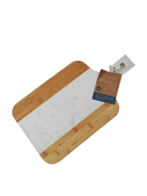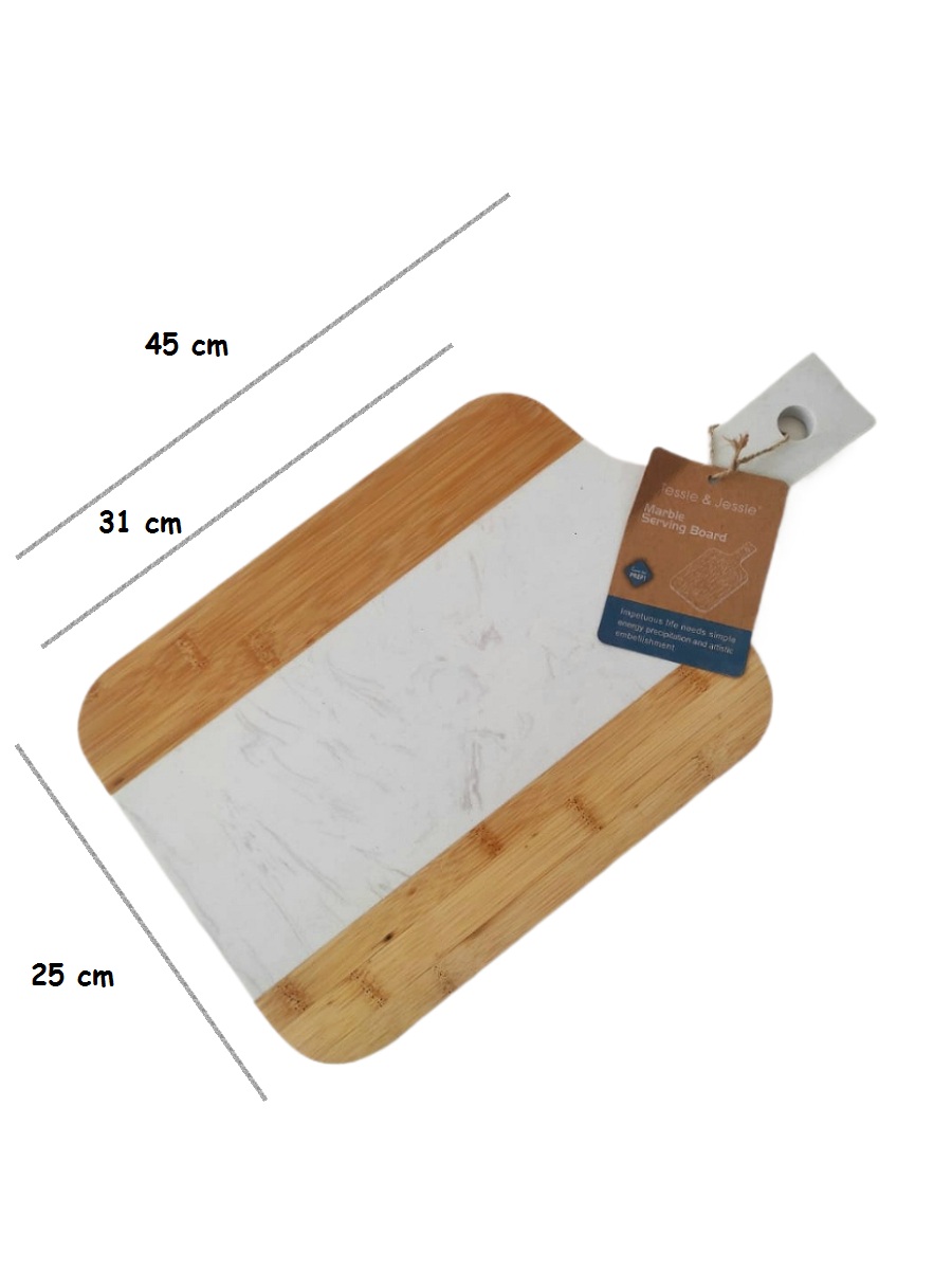 • Design fonctionnel : La forme rectangulaire permet une utilisation polyvalente, que ce soit pour la préparation des repas ou comme plateau de service. La partie en marbre peut également garder vos aliments au frais plus longtemps.