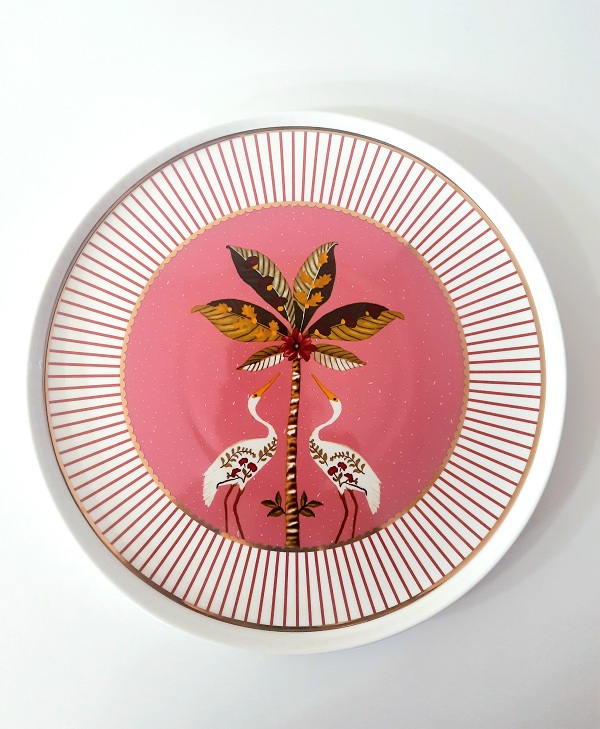 Un plat à tarte en porcelaine fine de couleur rose de 31 cm de diamètre de la collection jardin de majorelle
