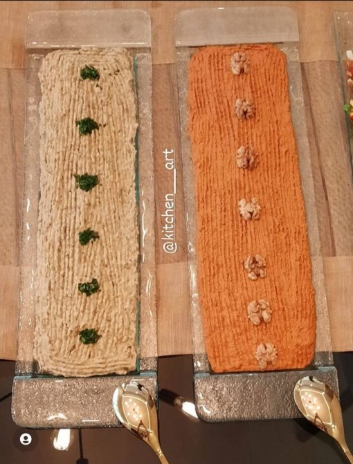 Un plat en verre de forme rectangulaire en verre soufflé transparent de 52 cm x 16,5 cm