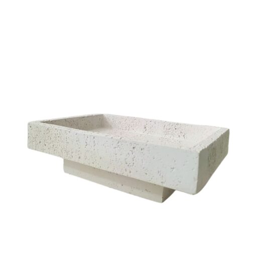 - Design : Avec son design rectangulaire et son pied, ce plat est conçu pour se démarquer tout en étant pratique pour une utilisation dans les salles de bain.
