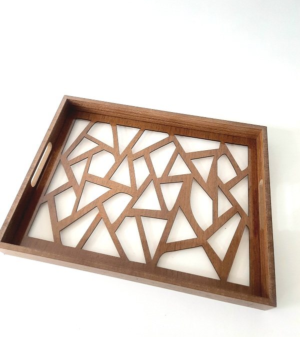Un plateau en bois de forme rectangulaire de 40 cm x 30 cm avec motif