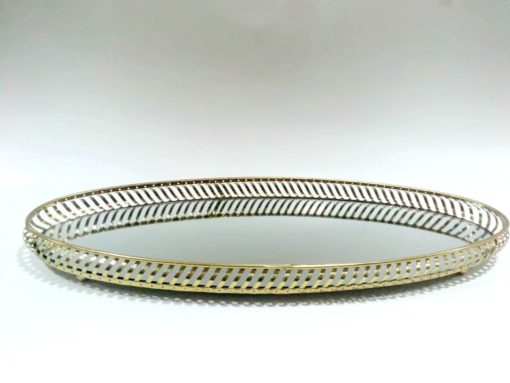 Un plateau à miroité en métal de couleur dorée de forme ovale de 52 cm