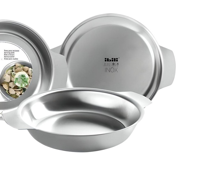Une poêle à paella en métal inoxydable de la marque espagnole Ibili de 18 cm de diamètre
