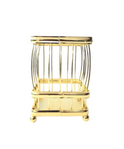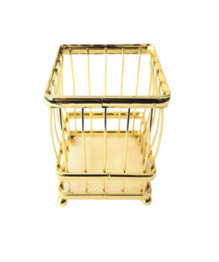 Un porte cuillère métallique de couleur dorée et de forme carrée de 15 cm de hauteur