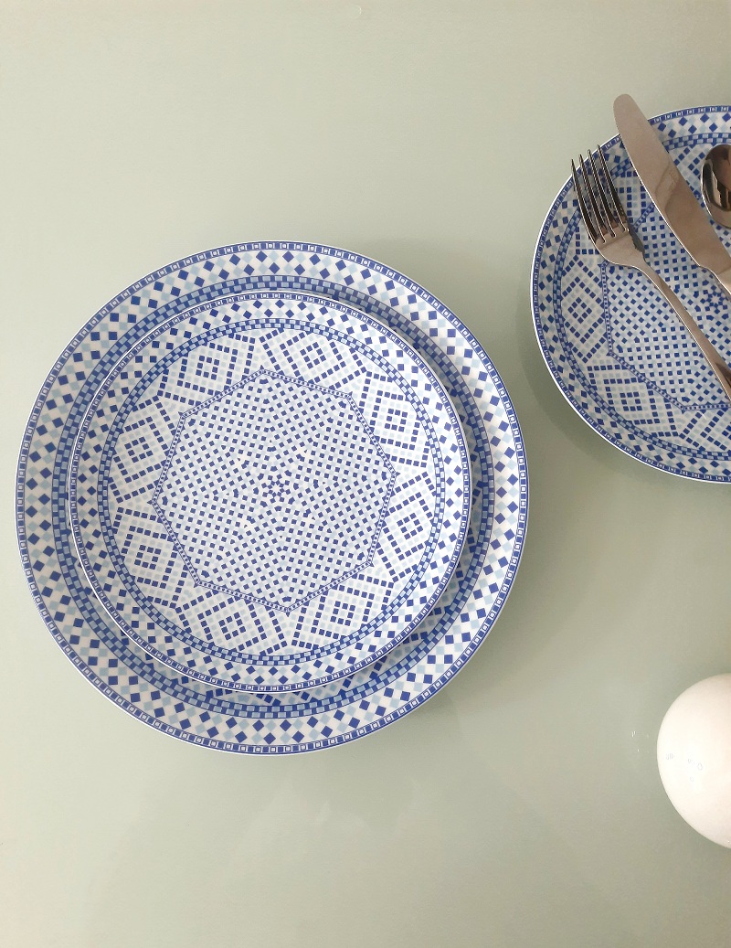 Un service de table en porcelaine fine de 12 pièces composé de 6 assiettes moyennes de 21 cm et de 6 grandes assiettes de 27 cm