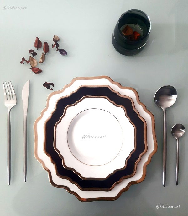 Un service de table en porcelaine fine ultra blanche de forme courbée pour 6 personnes composé de 6 grandes assiettes 6 moyennes et 6 petites