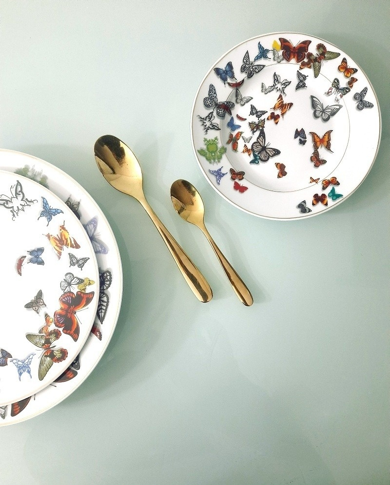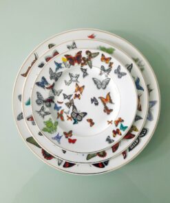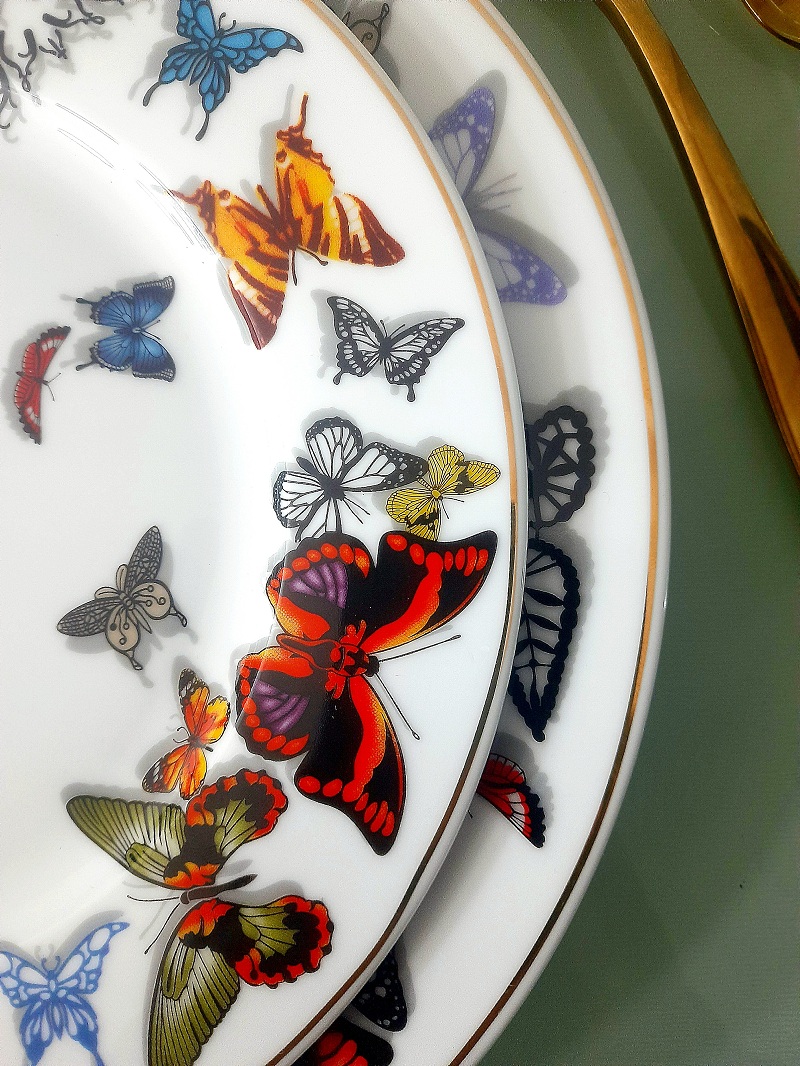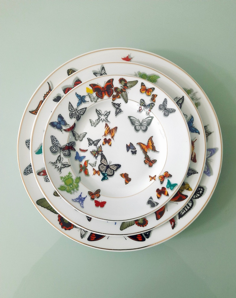 Un service de table en porcelaine de 18 pièces composé de 6 petites assiettes et de 6 assiettes moyennes et de 6 grandes assiettes