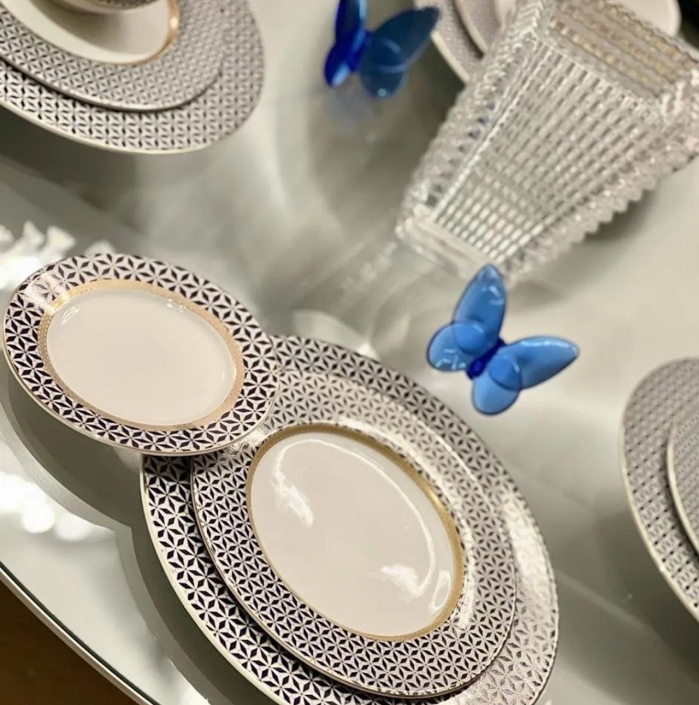 Un service de table de 24 pièces composé de 6 grandes assiettes, de 6 assiettes moyennes, de 6 assiettes petites et de 6 bols