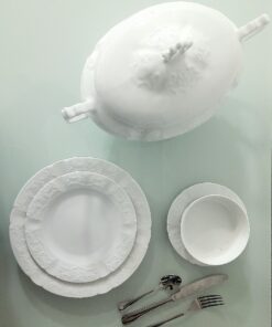 Élevez vos repas à un niveau de raffinement inégalé avec ce somptueux service de table de 25 pièces de la collection Marie-Antoinette. Fabriqué en porcelaine blanche de haute qualité, ce service allie élégance et fonctionnalité, parfait pour toutes vos occasions, des dîners en famille aux réceptions.