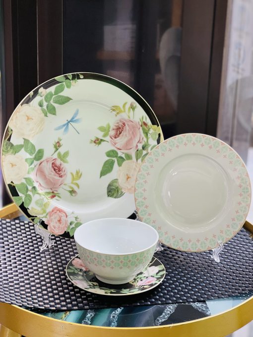 Un service de table de 24 pièces composé de 6 grandes assiettes, de 6 assiettes moyennes, de 6 assiettes petites et de 6 bols
