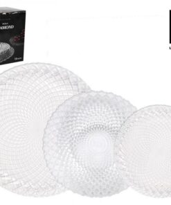 Un service de table en verre de 18 pièces composé de 6 assiettes moyennes et de 6 assiettes grandes et de 6 assiettes creuses