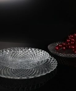 Un service de table en verre de 18 pièces composé de 6 assiettes moyennes et de 6 assiettes grandes et de 6 assiettes creuses