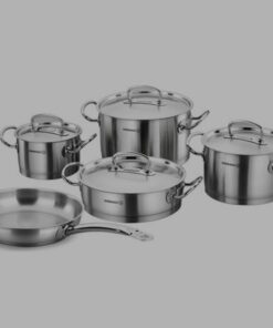 Un set de batterie de cuisine fait en inox 18/10 de la marque Korkmaz composé de 4 marmites de 2 litres / 3 litres / 4 litres et 6 litres avec couvercle et d’une poêle spécial chef de 24 cm