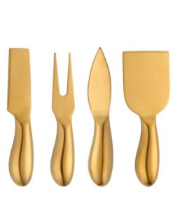 Un set de 4 ustensiles à fromage en métal inoxydable de couleur dorée de 15 cm de hauteur